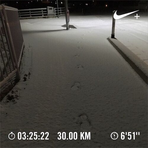 木曜日のランオフの後、天気は思ったほど崩れず、雪が積もるようなこともなかったので(ちっ)ちゃーんと走っております 24日はいつもどおり4時に起きてポクポクと。さて今日の練習はどうしようか?とアップジョグしながら考える無計画ラン 気温は思ったほ…